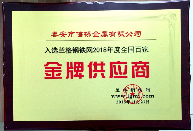 會(huì)議過(guò)后后,是眾多鋼企,鋼貿(mào)商期待的頒獎(jiǎng)環(huán)節(jié),泰安市信橋金屬有限公司再獲殊榮,榮獲蘭格網(wǎng)“2018年度全國(guó)百家金牌供應(yīng)商稱號(hào)”。頒獎(jiǎng)現(xiàn)場(chǎng)熱鬧非凡,參會(huì)人員倍感榮幸。