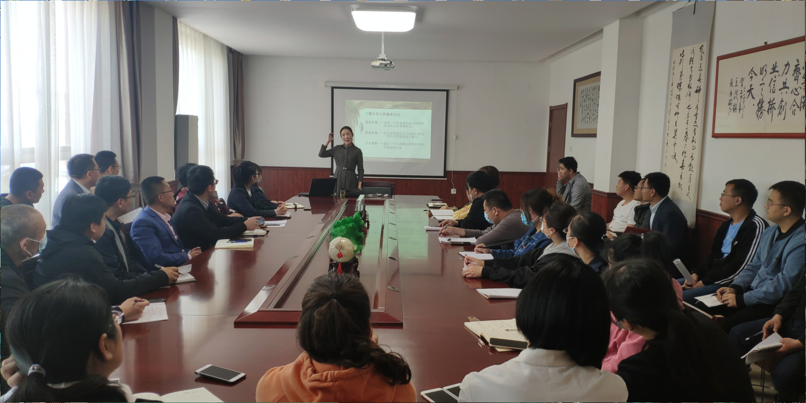 5月5號(hào),為提高公司整體形象,提高員工業(yè)務(wù)水平,公司請(qǐng)禮儀老師來(lái)公司培訓(xùn),經(jīng)過(guò)老師的講解,公司開(kāi)始實(shí)施全體員工著裝得體的政策,周一至周五全部著西裝、皮鞋。