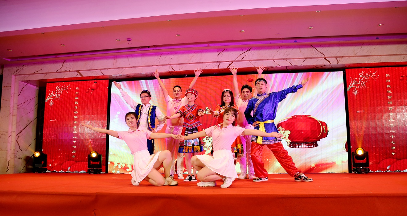 上半場結(jié)束,晚宴正式開始,在領(lǐng)導(dǎo)的帶領(lǐng)下,大家共同舉杯,共同祝愿信橋二十七周歲快樂!