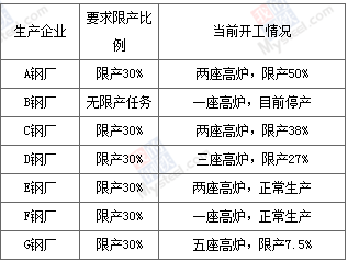 1, the blast furnace survey sample selected a total of 7 parent flow steel mills in Tianjin, 16 blast furnaces, and the total design capacity of blast furnace was 20.3 million tons. At present, 11 blast furnaces are normally produced, and 5 blast furnaces are discontinued. According to the work plan of industrial enterprises in the 2018-2019 heating season of Tianjin, we investigated the production limit rating and actual production limit of various steel companies: