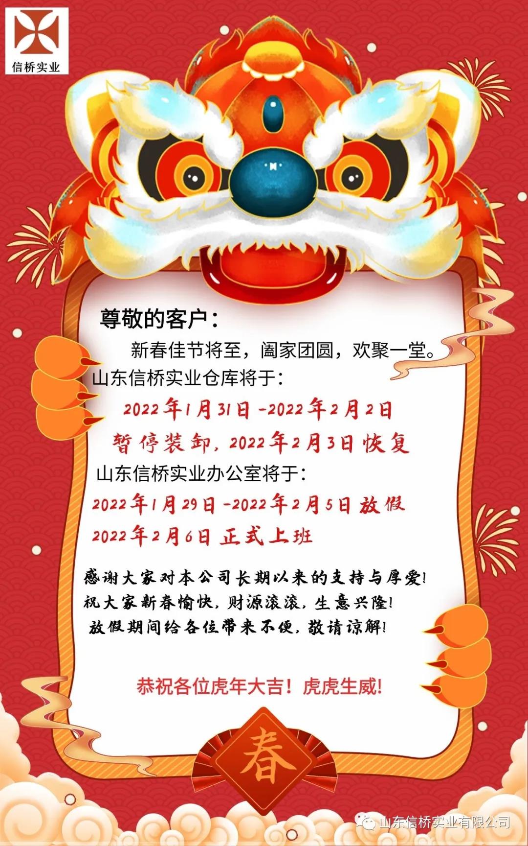 Notice of 2022 Spring Festival holiday